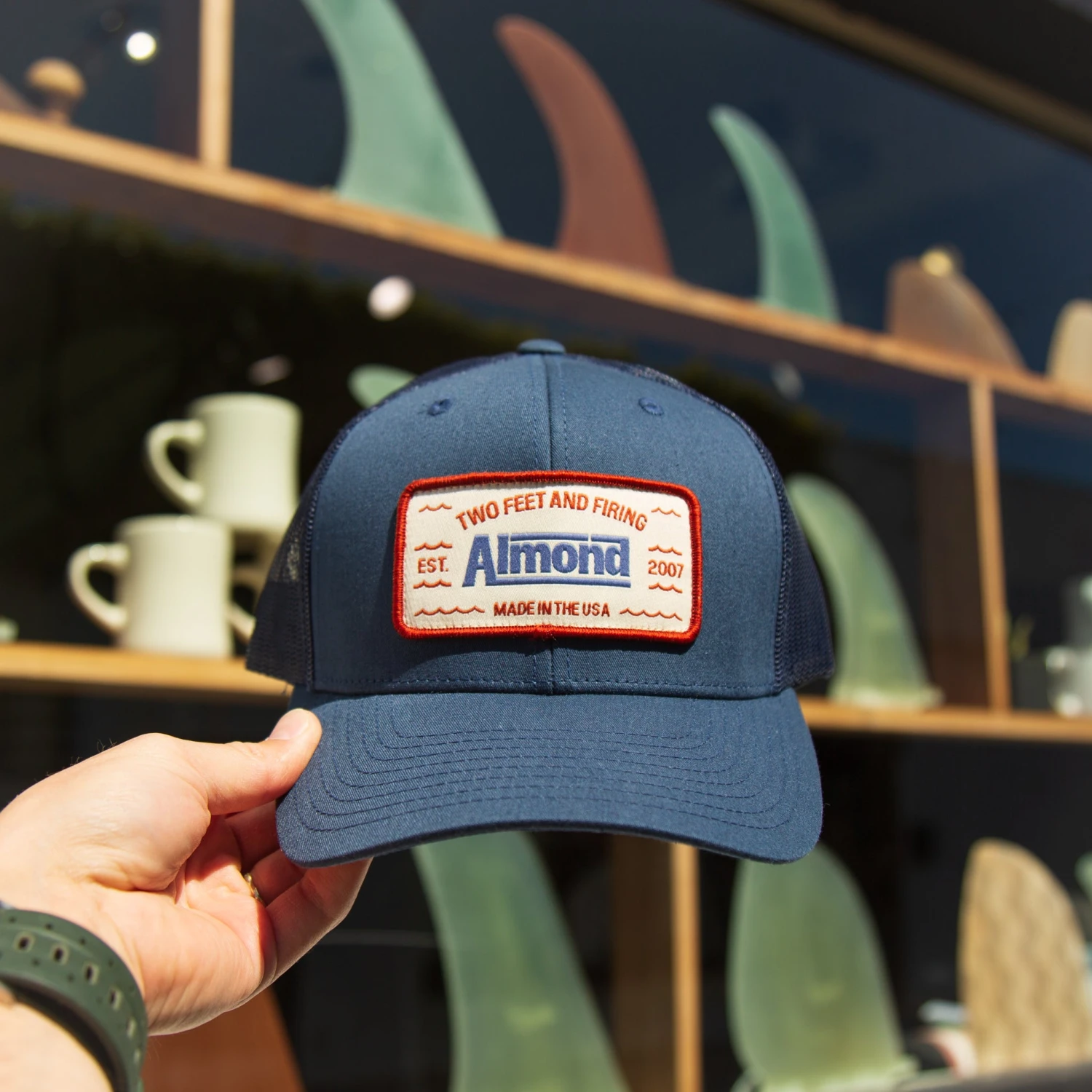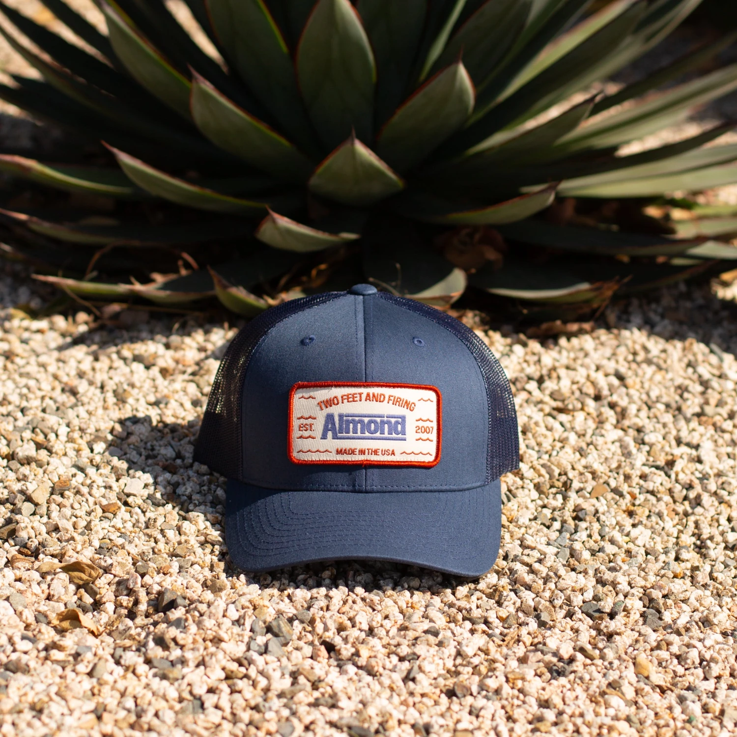 This new hat features a #twofeetandfiring patch designed by our good friend, Joshua Ariza.