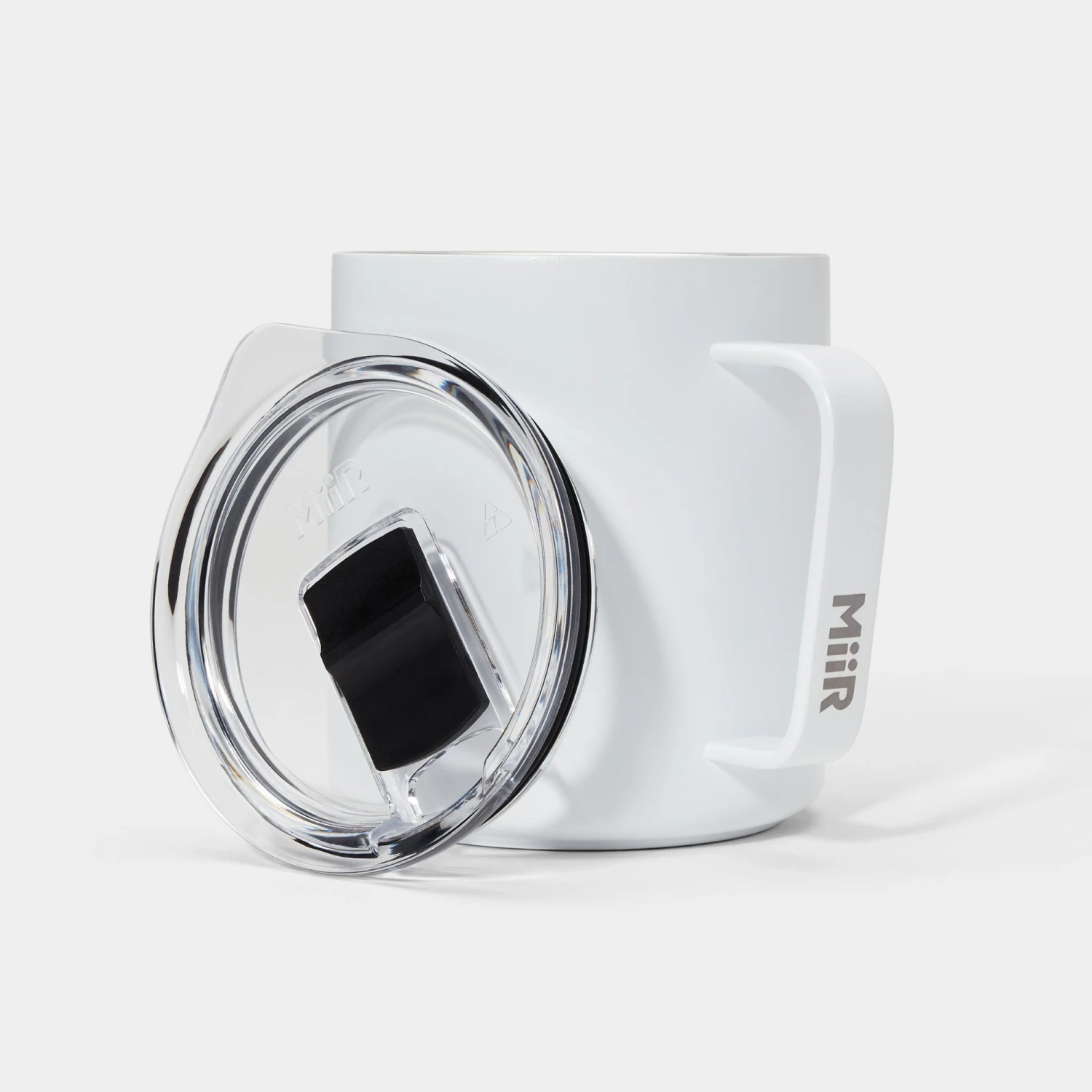 This 12oz Camp Cup from MiiR is vacuum insulated and features a press fit lid to prevent spilling and a convenient handle to make picking up your coffee mug a little easier. Use it for your coffee, tea, or your favorite drink you want to keep hot or cold.