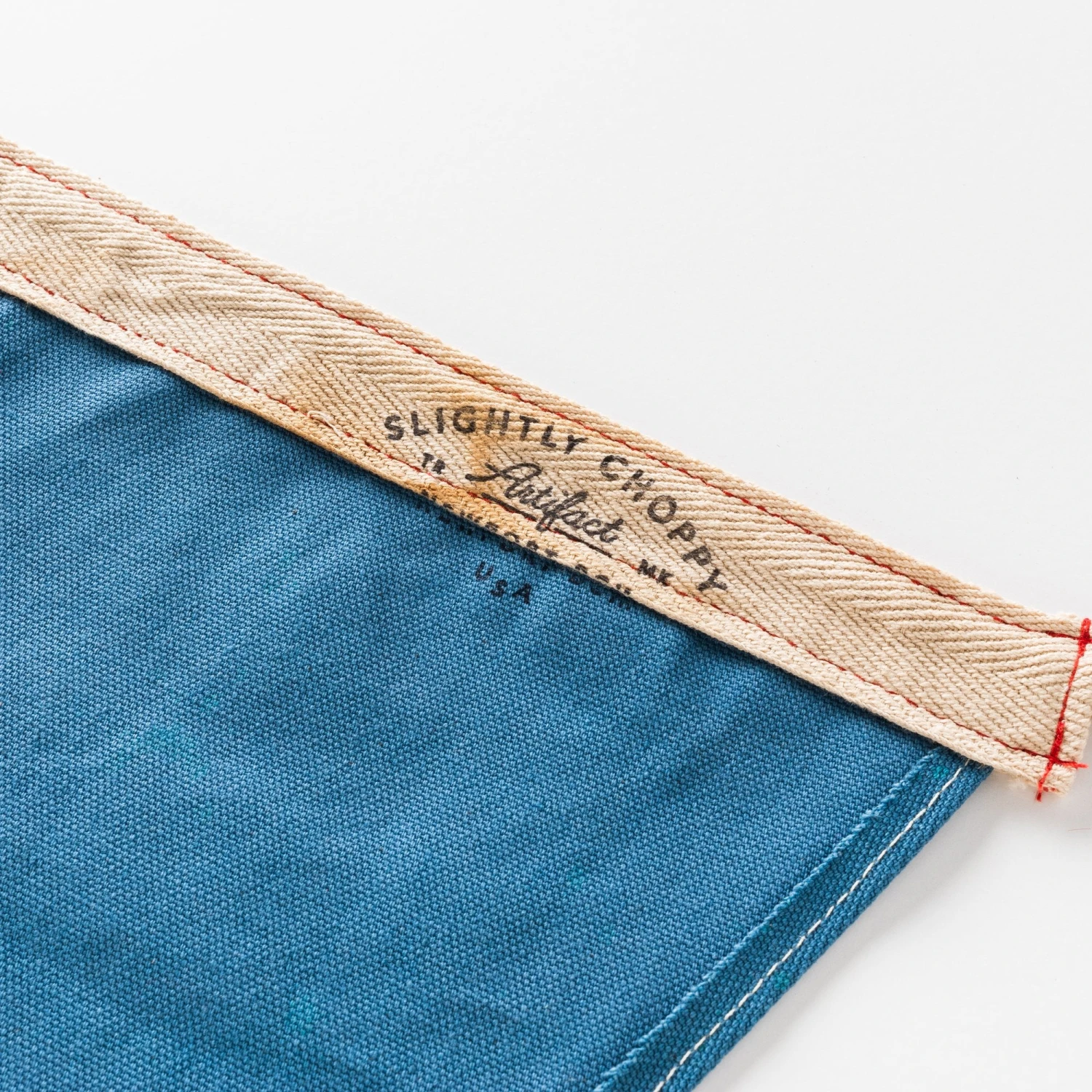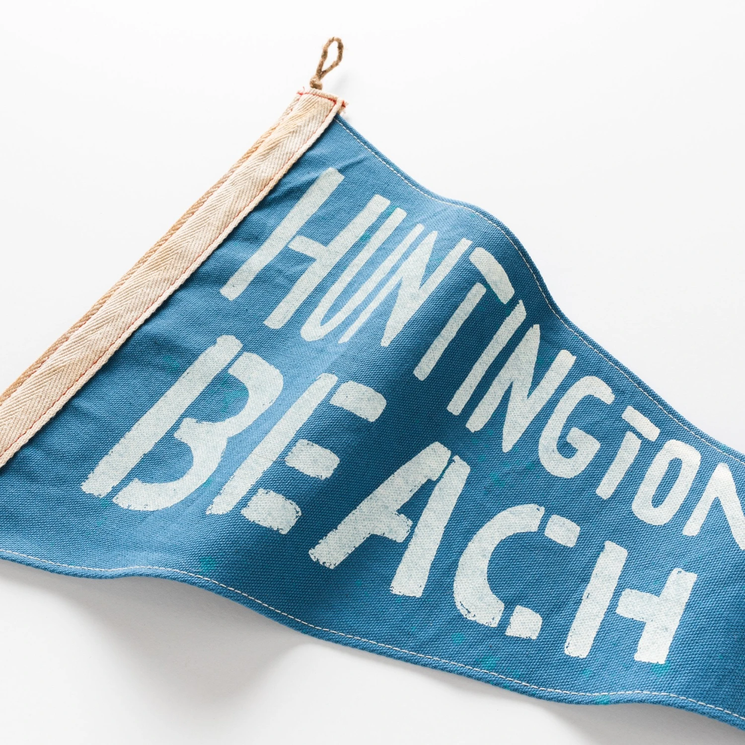 This hand-made flag uses a faded blue canvas with white hand-screen print. Each flag is topped with a natural twine + twill tape and stamped with Slightly Choppy branding.