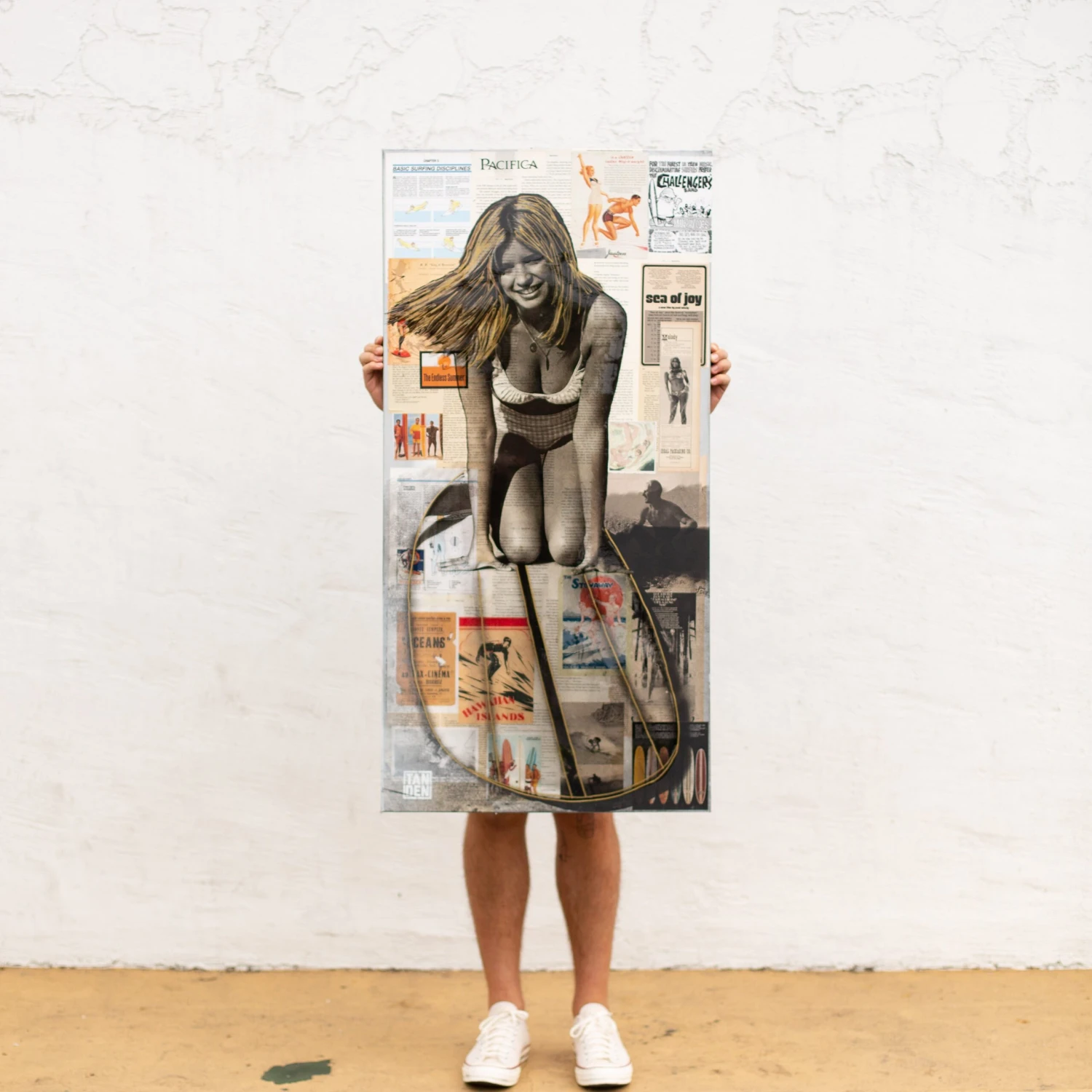 Tanden Launder is a multidisciplinary artist who works out of North Idaho. His recent art focuses on Americana and is expressed through mixed media. These one of a kind pieces are comprised of sign paint, old news articles, marker, and collaged on canvas with resin.