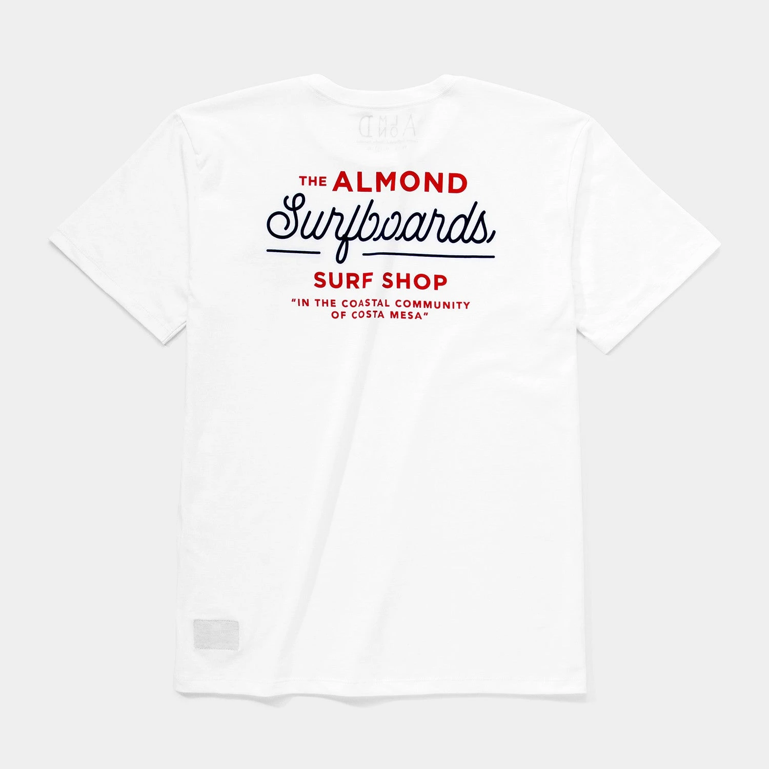 Almond Surfboards Surf Shop in the Coastal Community of Costa Mesa. Two things that you are certain to find in any surf shop that you step into: surfboards and good, old fashion surf shop t-shirts.